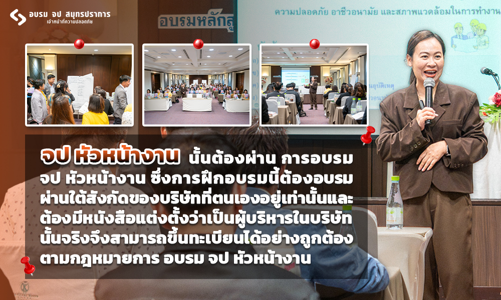จป หัวหน้างาน นั้นจะต้องผ่านการ อบรม จป หัวหน้างาน ซึ่งการฝึกอบรมนี้จะต้องอบรมผ่านใต้สังกัดของบริษัทที่ตนเองอยู่เท่านั้นและต้องมีหนังสือแต่งตั้งว่าเป็นผู้บริหารในบริษัทนั้นจริงจึงจะสามารถขึ้นทะเบียนได้อย่างถูกต้องตามกฎหมายการ อบรม จป หัวหน้างาน ไม่สามารถอบรมโดยไม่มีสังกัดได้